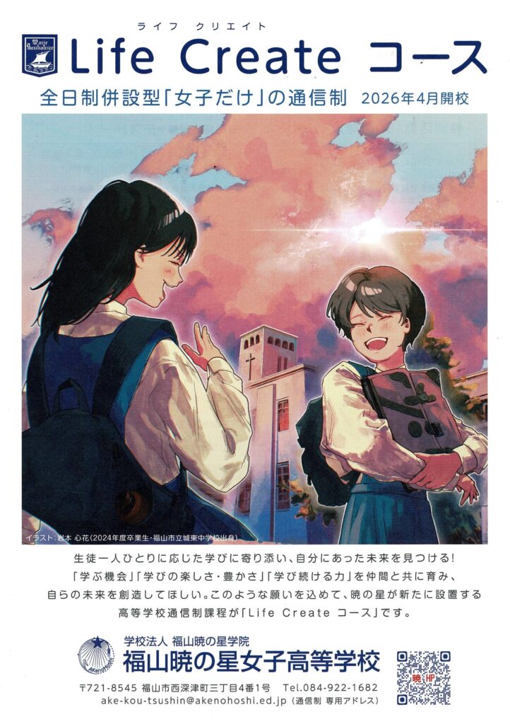 来年度から母校・福山暁の星女子高等学校に新たに開設される「通信制課程」(Life Createコース)の設置を決意されるに至った「思い」が母校の「note」というプラットフォームに投稿されておりますので、以下のURLよりアクセスくださいませ。